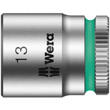 El uso manual y mecánico de las llaves de vaso (ISO 2725-parte 3) de Wera permite un trabajo tanto manual como mecánico. Llevan el sistema de búsqueda de herramientas Take it easy con marcas a color según el tamaño - para encontrar la herramienta precisa de forma fácil y rápida. Los útiles ofrecen un buen agarre, incluso con las manos llenas de aceite. Con ranura de captación de bolas. Para tornillos y tuercas de hexágono exterior. Fabricadas de cromo-vanadio, con un cromado mate.