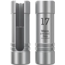 Inserto de llave de vaso para tornillos y tuercas de hexágono exterior, de 1/2", en versión larga. Al lado están ranurados para permitir el montaje de conectores enchufables de montaje. Con ranura de captación de bolas. Para el uso tanto manual como mecánico (no de impacto).
