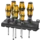 Juego de destorcinceles de Wera para atornillar, cincelar, escoplear y soltar tornillos agarrotados. Con el mango multicomponente Kraftform para un trabajo rápido y ergonómico. Kraftform Plus: con zonas duras de agarre para una gran velocidad de trabajo y zonas blandas de agarre que garantizan la transmisión de altos pares de giro. Con una varilla hexagonal pasante elaborada de material de puntas de alta calidad lo cual proporciona una transmisión de la fuerza sin pérdidas, incluso en el caso de golpes de martillo. Elaborados de un material bonificado resistente y duro para evitar astillamientos o la rotura de la varilla. Con caperuza de golpe integrada para aumentar la vida útil y reducir el peligro de astillamiento. Gracias a la llave hexagonal auxiliar integrada y por medio de llaves de boca o anillo se pueden transferir unos pares de giro más altos. La punta Black Point de Wera así como un procedimiento de endurecimiento sofisticado garantizan una larga vida útil de la punta, una mayor protección anticorrosiva y una gran exactitud de posicionamiento. El sistema de protección contra el rodamiento mediante hexágono evita las molestias que conlleva el perder la herramienta que se rueda en el puesto de trabajo.