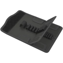 En su lado posterior, la caja de material textil dispone de un zona mullida. Con ayuda de la tira autoadhesiva que incluye el juego, la caja textil se puede conectar a los demás componentes del sistema Wera 2go. O tambén se puede fijar en la pared, la estantería, o el carro para las herramientas del taller.