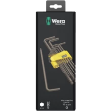 Juego de llaves acodadas de alta calidad para tornillos de hexágono interior de pulgadas, en el clip práctico de material resistente para un alojamiento constantemente seguro y una extracción fácil de las llaves. Llaves acodadas con perfil Hex-Plus: éste ofrece mayores superficies de apoyo dentro de la cabeza del tornillo. Así se reduce a un mínimo el efecto de entalladura y la destrucción de la cabeza del tornillo se evita casi por completo. La bola en el brazo largo permite un trabajo seguro incluso en situaciones de montaje complicadas. El tratamiento de superficie Black Laser proporciona una protección excelente de la superficie, también con relación a la corrosión, y garantiza una larga vida útil. Gracias a las duraderas marcas del tamaño grabadas a láser, las llaves siempre se tienen a mano rápidamente.