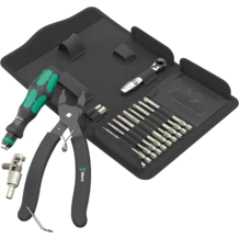 • Con una carraca de puntas de Wera Zyklop Mini 1, un porta-puntas manual 816 R, 1 tronchacadenas, 1 soportacadenas, un juego de repuestos del tronchacadenas Pin, 1 pinza para cierre de cadena, 10 puntas de un largo de 89 mm, 2 puntas de un largo de 25 mm