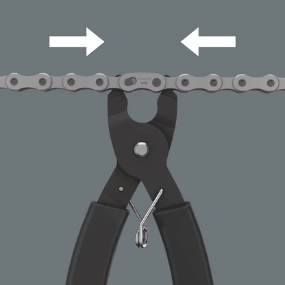 La pinza para cierres de cadena facilita la apertura de cierres de cadena bloqueables, para la limpieza, o para cambiar eslabones de la cadena.