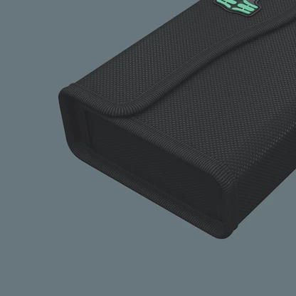En su lado posterior, la caja de material textil dispone de un zona mullida. Con ayuda de la tira autoadhesiva que incluye el juego, la caja textil se puede conectar a los demás componentes del sistema Wera 2go. O tambén se puede fijar en la pared, la estantería, o el carro para las herramientas del taller.