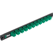 Un listón magnético sin útiles. Para hasta 11 llaves de boca Joker. Los muelles de sujeción que lleva el listón permiten un alojamiento perfecto y una extracción muy fácil de los útiles. Gracias al fuerte imán que lleva, el listón se mantiene de forma segura en superficies metálicas. De forma alternativa, el listón también se puede atornillar en la pared.