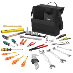 El juego de herramientas para el cinturón. El bolso de herramientas dispone de 5 zonas para depositar los útiles y para extraer la herramienta necesaria en cualquier momento. El bolso ha sido fabricado de una forma robusta, se compone de un material irrompible y también se puede utilizar bajo condiciones adversas. El juego contiene una serie de útiles básicos que pueden ser completados o cambiados según el deseo individual del usuario. El bolso es de tipo pistolera para llevarlo en el cinturón. De esta forma es ideal para su uso móvil en diferentes lugares de trabajo.