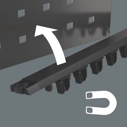 • Gracias al fuerte imán que lleva, el listón se mantiene de forma segura en superficies metálicas. De forma alternativa, el listón también se puede atornillar en la pared.