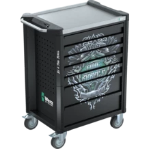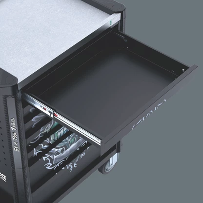 Un carro para la herramienta del taller exclusivo en el diseño tipo "Tool Rebel". Con amplia superficie de depósito y de trabajo en acero inoxidable que está completamente sellada para proteger el interior del carro, por ejemplo, contra líquidos que pudieran verterse. 5 cajones planos y 2 cajones altos permiten un orden y una organización eficaz y móvil de la herramienta y del material. Se trata de una construcción extremamente robusta gracias a la doble pared y la arquitectura completamente soldada de todo el cuerpo del carro. Los capuchones de material plástico de alta calidad en los extremos ofrecen una seguridad especial. Adecuado para el uso extremo diario en el taller. Viene con el siguiente contenido: 7 depósitos de espuma de Wera: depósito de espuma 9710 para el juego de destornilladores Set 1, depósito de espuma 9720 para el juego de carraca 8000 A Zyklop Set 1 (de 1/4"), depósito de espuma 9721 para el juego de carraca 8000 B Zyklop Set 1 (de 3/8"), depósito de espuma 9723 para el juego de vasos de punta Zyklop B Set 1 (de 3/8"), depósito de espuma 9731 para el juego de llaves de boca y anillo 6003 Joker Set 1, depósito de espuma 9740 para el juego de llaves acodadas Set 1, depósito de espuma 9750 para Kraftform Kompakt y Tool-Check PLUS Set 1.