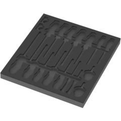 Las herramientas se apoyan de forma segura en la espuma, gracias a las cortes precisas de los contornos. La ubicación inteligente de los útiles permite un alojamiento económico y un acceso rápido a la herramienta precisa.