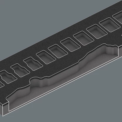 Las herramientas se apoyan de forma segura en la espuma, gracias a las cortes precisas de los contornos. La ubicación inteligente de los útiles permite un alojamiento económico y un acceso rápido a la herramienta precisa.