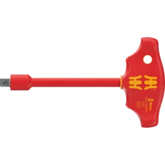 - Llaves de vaso, vasos de punta y prolongaciones con una seguridad elevada, gracias al aislamiento bicomponente: con el núcleo de aislamiento de color amarillo y la capa aislante exterior en color rojo.