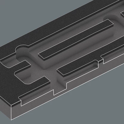 Las herramientas se apoyan de forma segura en la espuma, gracias a las cortes precisas de los contornos. La ubicación inteligente de los útiles permite un alojamiento económico y un acceso rápido a la herramienta precisa.