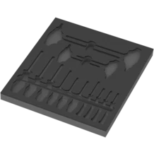 Las herramientas se apoyan de forma segura en la espuma, gracias a las cortes precisas de los contornos. La ubicación inteligente de los útiles permite un alojamiento económico y un acceso rápido a la herramienta precisa.