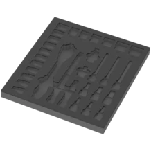 Las herramientas se apoyan de forma segura en la espuma, gracias a las cortes precisas de los contornos. La ubicación inteligente de los útiles permite un alojamiento económico y un acceso rápido a la herramienta precisa.