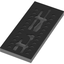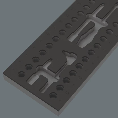1 depósito de espuma duradero, sin herramienta; es bicolor para que se note rápidamente en caso de que falte una pieza; anchura x altura x profundidad: 172 x 30 x 392 mm; depósito de espuma de repuesto para el artículo 9727 de Wera; adecuado para los carros de herramientas para el taller Tool Rebel.