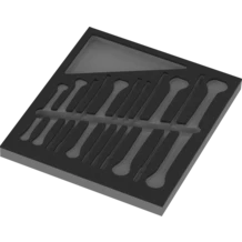 Las herramientas se apoyan de forma segura en la espuma, gracias a las cortes precisas de los contornos. La ubicación inteligente de los útiles permite un alojamiento económico y un acceso rápido a la herramienta precisa.