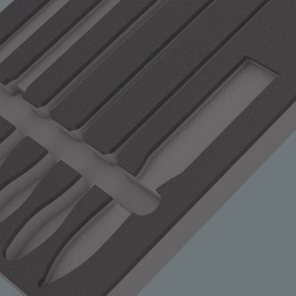 Las herramientas se apoyan de forma segura en la espuma, gracias a las cortes precisas de los contornos. La ubicación inteligente de los útiles permite un alojamiento económico y un acceso rápido a la herramienta precisa.