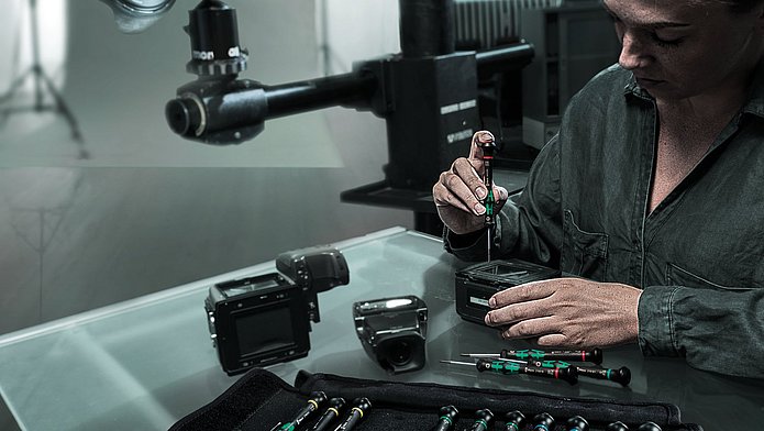 El Wera Kraftform Micro – para trabajos precisos, rápidos y potentes en electrónica y mecánica fina. Con mango de tres zonas, tapa giratoria suave y punta Black Point duradera.
