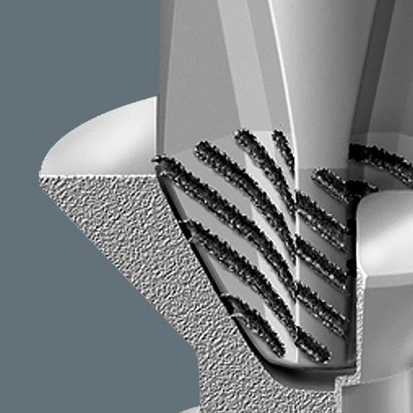 La superficie micro-rugosa se aferra firmemente en la cabeza del tornillo, y permite así que el  destornillador se encuentre fijamente posicionado dentro del tornillo. De esta manera se reduce el "efecto de cam-out", o sea el hecho de que la varilla del destornillador se deslize indeseadamente del tornillo. Además, esto reduce la presión necesaria que ha de ejercerse sobre la herramienta.