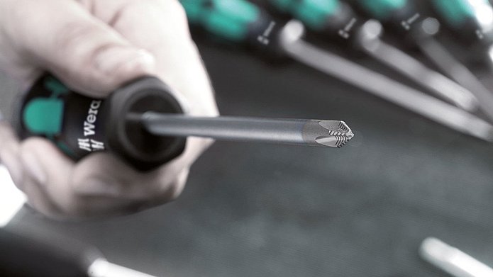 Wera Lasertip disminuye la fuerza de presión necesaria que tiene que ejercer el usuario, y al mismo tiempo aumenta la transmisión de fuerza. El atornillado se hace más confortable y seguro.