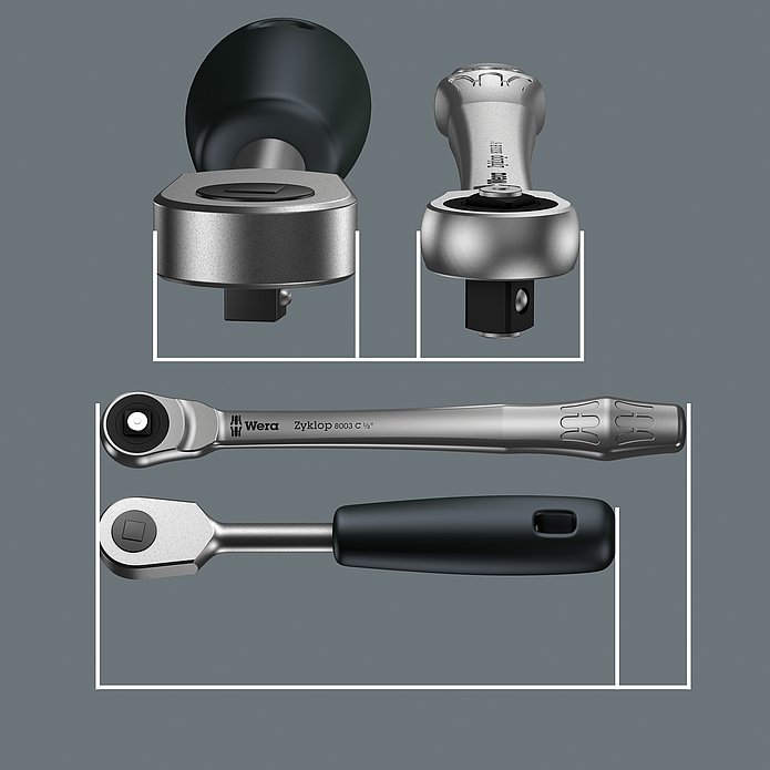 Los espacios de trabajo son cada vez más estrechos todo es más compacto, así que también las carracas tienen que dominar situaciones cada vez con menos espacios. Wera ha solucíonado este problema. Para esto, nuestros especialistas se han ocupado de forma especialmente intensa con los espacios de trabajo superestrechos. El resultado es nuestra carraca extremamente delgada y robusta con el nombre Zyklop Metal que dispone de una palanca extralarga. Si lo más importante es que no se pierda el vaso y que de ninguna manera ocurra un cambio indeseado del sentido de giro, entonces la herramienta más adecuada es la carraca Zyklop Metal Push con cuadradillos pasante.