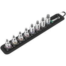Una correa textil robusta (Belt) en el típico diseño de Wera con 8 vasos de punta en un espacio muy reducido. El mecanismo de giro fácil y suave permite una sujeción segura así como una extracción muy fácil de los vasos. Dispone del sistema de búsqueda de herramienta Take it easy con marcación a color según el tamaño - para encontrar la herramienta precisa de forma sencilla y rápida. Incluye un mosquetón para la fijación de la correa en la trabilla del cinturón o en un bolso. Los vasos de punta son especialmente cortos y estables y disponen de las ventajas de la tecnología de Wera. Los vasos disponen de la función de retención para un trabajo de atornillar más cómodo ya que se reduce el riesgo de que se pierda el tornillo al llevarlo hacia la pieza de montaje. Dispone de una superficie de fieltro en la parte posterior, y con ayuda de las cintas autoadhesivas es fácil sujetarla, por ejemplo, en la pared, la estantería, el carro de herramientas o el sistema de transporte de herramientas Wera 2go.