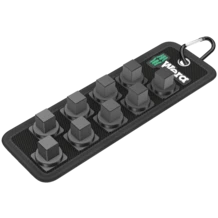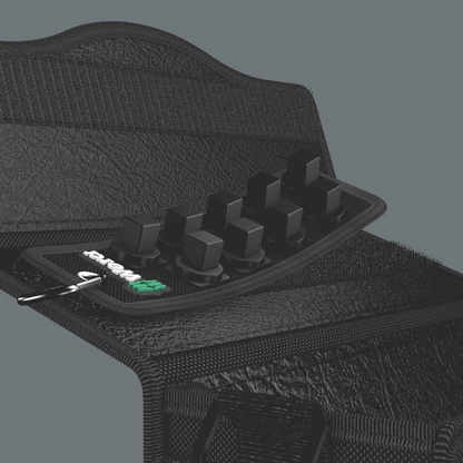 Una correa textil robusta (Belt) en el típico diseño de Wera para hasta 9 vasos Impaktor (1/2") en un espacio sumamente reducido. El mecanismo de giro de funcionamiento suave permite un depósito seguro y una extracción muy fácil de los vasos. Incluye un mosquetón para la fijación en la trabilla del cinturón o en un bolso. La parte posterior con zona de fieltro y la cinta autoadhesiva sirven para una fijación fácil, por ejemplo, en la pared, en la estantería, en el carro del taller o en los elementos del sistema de transporte de útiles Wera 2go.