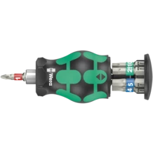 Stubby con recámara para aplicaciones rápidas en la moto. Porta-puntas extra pequeño con toma de puntas corta para zonas de difícil acceso. Incluye 7 puntas de acero inoxidable, 6 de ellas en la recámara del mango y 1 en el porta-puntas. El mango Kraftform de 2 componentes con su práctica combinación de zonas duras y blandas permite un agarre firme y un trabajo preciso. Sistema de búsqueda Take it easy: Con código de colores del perfil y marcado del tamaño para encontrar fácilmente la punta deseada
