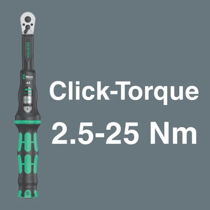 • Juego de 16 piezas de herramientas para atornillar para trabajos en la bicicleta con control dinamométrico que incluye una llave dinamométrica Wera Clique-Torque A 5 (2,5-25 Nm)