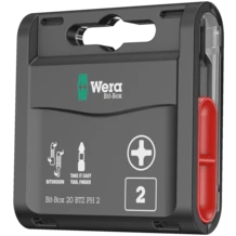 Puntas BiTorsion para tornillos Phillips en la caja práctica tipo Bit-Box. Con zona de torsión a la cual se deriva la energía cinética en caso de picos de carga. Así se consigue un aumento imortante de la durabilidad del producto. Con sistema de búsqueda de herramienta Take it easy: Una marcación a color según el perfil, así como con sellos que indican el tamaño. Resistentes y duras, para la utilización universal. Hexagonales de 1/4", aptas para porta-puntas según DIN ISO 1173-D 6,3.