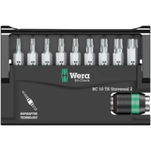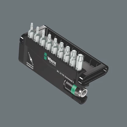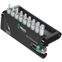 Un Bit-Check robusto de Wera. Los Bit-Check permiten una vista general rápida sobre la herramienta que se tiene. Las puntas que no se necesitan, simplemente se vuelven a guardar en el juego y así no se pierden. El transporte es fácil, por ejemplo, en el bolsillo de la camisa. Incluye un porta-puntas universal con sistema de cambio rápido: la tecnología Rapidaptor permite una toma de las puntas, también sin accionar el manguito. La extracción de las puntas se realiza por medio del simple desplazamiento hacia adelante - para un cambio de puntas ultrarrápido, incluso con una sóla mano. Para la toma de puntas con arrastre de hexágono exterior de 1/4" según la norma DIN ISO 1173-C 6,3. Para la inserción en la máquina destornilladora o para conectar con el portabrocas del taladro electrónico. Incluye puntas TORX® duras y resistentes, para aplicaciones universales.