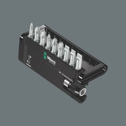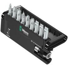 Un Bit-Check robusto de Wera. Los Bit-Check permiten una vista general rápida sobre la herramienta que se tiene. Las puntas que no se necesitan, simplemente se vuelven a guardar en el juego y así no se pierden. El transporte es fácil, por ejemplo, en el bolsillo de la camisa. Incluye un porta-puntas universal con un potente imán permanente y sistema de cambio rápido para la toma de puntas con arrastre de hexágono exterior de 1/4" según la norma DIN ISO 1173-C 6,3. Para la inserción en la máquina destornilladora o para conectar con el portabrocas del taladro electrónico. Incluye puntas de torsión contra el desgaste prematuro. Resistentes y duras, para aplicaciones universales.