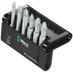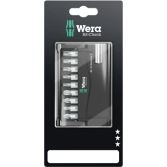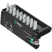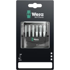 Un Bit-Check robusto de Wera. Los Bit-Check permiten una vista general rápida sobre la herramienta que se tiene. Las puntas que no se necesitan, simplemente se vuelven a guardar en el juego y así no se pierden. El transporte es fácil, por ejemplo, en el bolsillo de la camisa. Incluye un porta-puntas universal con potente imán permanente y sistema de cambio rápido para la toma de puntas con arrastre de hexágono exterior de 1/4" según la norma DIN ISO 1173-C 6,3. Para la inserción en la máquina destornilladora o para conectar con el portabrocas del taladro electrónico. Incluye puntas de torsión contra el desgaste prematuro. Puntas resistentes y duras de Wera para tornillos de hexágono interior, para aplicaciones universales.