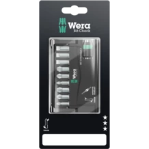 Un Bit-Check robusto de Wera. Los Bit-Check permiten una vista general rápida sobre la herramienta que se tiene. Las puntas que no se necesitan, simplemente se vuelven a guardar en el juego y así no se pierden. El transporte es fácil, por ejemplo, en el bolsillo de la camisa. Incluye un porta-puntas universal con potente imán permanente y sistema de cambio rápido para la toma de puntas con arrastre de hexágono exterior de 1/4" según la norma DIN ISO 1173-C 6,3. Para la inserción en la máquina destornilladora o para conectar con el portabrocas del taladro electrónico. Incluye puntas de torsión contra el desgaste prematuro. Puntas resistentes y duras de Wera para tornillos de hexágono interior, para aplicaciones universales.