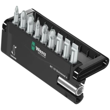 Un Bit-Check robusto de Wera. Los Bit-Check permiten una vista general rápida sobre la herramienta que se tiene. Las puntas que no se necesitan, simplemente se vuelven a guardar en el juego y así no se pierden. El transporte es fácil, por ejemplo, en el bolsillo de la camisa. Incluye un porta-puntas universal con manguito de acero inoxidable, un anillo de retención y un potente imán permanente para la toma de puntas con arrastre de hexágono exterior de 1/4" según la norma DIN ISO 1173-C 6,3. Para la inserción en la máquina destornilladora o para conectar con el portabrocas del taladro electrónico. Incluye puntas de torsión contra el desgaste prematuro. Resistentes y duras, para aplicaciones universales.