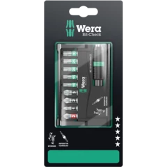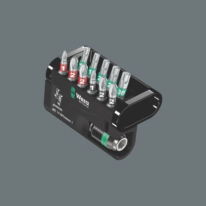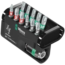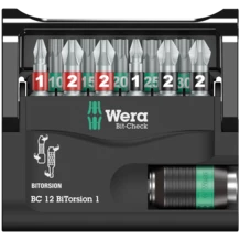 Puntas duras y resistentes, para la aplicación universal. Se trata de puntas BiTorsion con una zona de torsión a la cual se deriva la energía cinética en el caso de los picos de carga. Así aumenta la longevidad del producto de forma importante. Con ayuda del porta-puntas adecuado, estas puntas disponen de la mayor duración de su vida útil posible. Se prevé de la tecnología Rapidaptor que permite la inserción de las puntas incluso sin utilizar el manguito. La desconexión de la punta se realiza por medio de un desplazamiento simple hacia adelante - para un cambio de puntas ultrarrápido, incluso con una sola mano. Adecuados para la toma de puntas de hexagonal exterior de 1/4" según las normas DIN ISO 1173-C 6,3 y E 6,3 . Para la inserción en la máquina destornilladora o para conectar con el portabrocas del taladro electrónico. El Bit-Check multicomponente convence por su peso ligero y sus dimensiones extremamente compactas. El material blando en la parte baja del Bit-Check permite un alojamiento seguro de la herramienta en la caja, y al mismo tiempo facilita su extracción. El perfil y el tamaño de las puntas son fácilmente reconocibles gracias al sistema de búsqueda fácil Take it easy con sus codificaciones a color y su letra claramente visible.