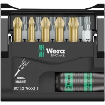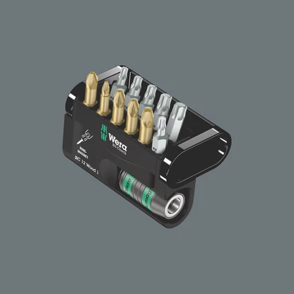 Un Bit-Check robusto de Wera. Los Bit-Check permiten una vista general rápida sobre la herramienta que se tiene. Las puntas que no se necesitan, simplemente se vuelven a guardar en el juego y así no se pierden. El transporte es fácil, por ejemplo, en el bolsillo de la camisa. Incluye un porta-puntas universal con un imán anular capaz de sostener incluso tornillos largos y pesados de manera supersegura, así como con la tecnología Rapidaptor que también permite una toma de las puntas sin accionar el manguito. Para la inserción en la máquina destornilladora o para conectar con el portabrocas del taladro electrónico. El Bit-Check se puede colocar de forma vertical, es multicomponente y asegura un alojamiento duradero y seguro de las puntas.