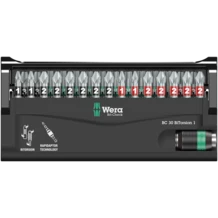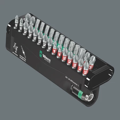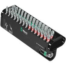 Puntas duras y resistentes, para la aplicación universal. Se trata de puntas BiTorsion con una zona de torsión a la cual se deriva la energía cinética en el caso de los picos de carga. Así aumenta la longevidad del producto de forma importante. Con ayuda del porta-puntas adecuado, estas puntas disponen de la mayor duración de su vida útil posible. Se prevé de la tecnología Rapidaptor que permite la inserción de las puntas incluso sin utilizar el manguito. La desconexión de la punta se realiza por medio de un desplazamiento simple hacia adelante - para un cambio de puntas ultrarrápido, incluso con una sola mano. Adecuados para la toma de puntas de hexagonal exterior de 1/4" según las normas DIN ISO 1173-C 6,3 y E 6,3 . Para la inserción en la máquina destornilladora o para conectar con el portabrocas del taladro electrónico. El Bit-Check multicomponente convence por su peso ligero y sus dimensiones extremamente compactas. El material blando en la parte baja del Bit-Check permite un alojamiento seguro de la herramienta en la caja, y al mismo tiempo facilita su extracción. El perfil y el tamaño de las puntas son fácilmente reconocibles gracias al sistema de búsqueda fácil Take it easy con sus codificaciones a color y su letra claramente visible.