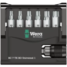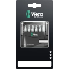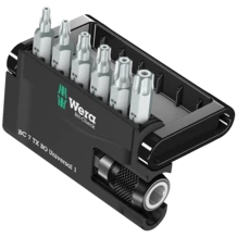 Un Bit-Check robusto de Wera. Los Bit-Check permiten una vista general rápida sobre la herramienta que se tiene. Las puntas que no se necesitan, simplemente se vuelven a guardar en el juego y así no se pierden. El transporte es fácil, por ejemplo, en el bolsillo de la camisa. Incluye un porta-puntas universal para la toma de puntas con arrastre de hexágono exterior de 1/4" según la norma DIN ISO 1173-C 6,3. Con el sistema de cambio rápido para un cambio ultrarrápido de las puntas. Incluye puntas TORX® BO para uniones atornilladas de seguridad, para el uso universal.