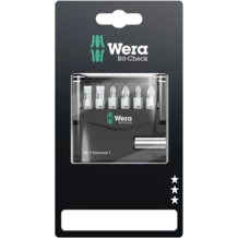 6 puntas de Wera alojadas de forma sistemática en un espacio mínimo en el Bit-Check práctico. Puntas de Wera resistentes y duras para tornillos de hexágono interior, para aplicaciones universales. Con 1 porta-puntas universal 893/4/1 K para la inserción en la máquina destornilladora o para conectar con el portabrocas del taladro electrónico.