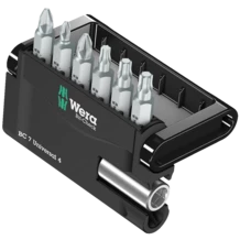 Un Bit-Check robusto de Wera. Los Bit-Check permiten una vista general rápida sobre la herramienta que se tiene. Las puntas que no se necesitan, simplemente se vuelven a guardar en el juego y así no se pierden. El transporte es fácil, por ejemplo, en el bolsillo de la camisa. Incluye un porta-puntas universal con potente imán permanente para la toma de puntas con arrastre de hexágono exterior de 1/4". Para la inserción en la máquina destornilladora o para conectar con el portabrocas del taladro electrónico. El Bit-Check se puede colocar de forma vertical, es multicomponente y asegura un alojamiento duradero y seguro de las puntas.
