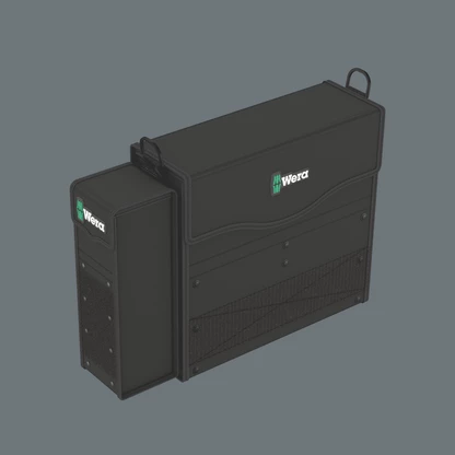 1 caja de herramientas vertical robusta y estable en su forma, con asidero, para guardar y transportar herramientas largas y piezas de repuesto. Dispone de una gran resistencia contra cortes y punzadas. Con zona autoadhesiva para engancharla al sistema Wera 2go. La caja de herramientas vertical compacta Wera 2go se puede llenar con herramienta y piezas de repuesto y es posible engancharla al elemento Wera 2go 2 (contenedor). De esta forma, el espacio disponible se amplía de forma práctica y simple.