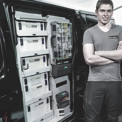 - Para acoplar las cajas y los bolsos de material textil de Wera que llevan una zona de conexión autoadhesiva