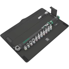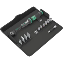 Llave dinamométrica de salto en el diseño inconfundible de Wera. Una construcción muy robusta y una gran precisión según la norma DIN EN ISO 6789-1:2017-07. Un ajuste y un bloqueo muy fácil del valor determinado. La señal de encastre claramente audible y palpable al alcanzar el valor de escala facilita adicionalmente el ajuste seguro del par de giro deseado. El mecanismo robusto de activación garantiza una señal muy claramente audible y palpable al alcanzar el valor del par de giro ajustado. Para el apriete a la derecha y con una carraca de inversión de 45 dientes. La llave dinamométrica de salto de Wera viene acompañada por una gran gama de accesorios de los cuales se compone este práctico juego de útiles. El juego contiene: Click-Torque A 6 ¼" 2,5 - 25 Nm, 6 vasos con arrastre de ¼", 11 puntas Hex-Plus de hexágono interior, de ranura en cruz PH y tipo TORX®, más los accesorios que se componen de la prolongación y el adaptador.