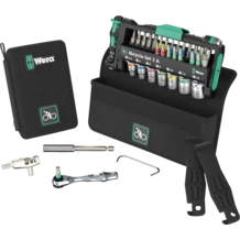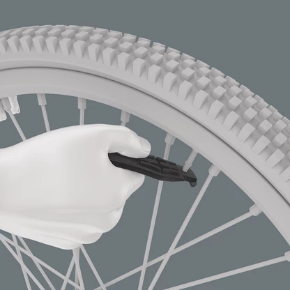 Juego de herramientas para la bicicleta con carraca, puntas, vasos y un porta-puntas dentro de un Tool-Check supercompacto. Es perfecto como acompañante universal, e incluye toda una serie de diferentes aplicaciones en trabajos de atornillar. El detalle especial más notable: el juego incluye dos bolsos - el bolso grande para el juego completo, así como un bolso pequeño de material suave que sirve para llevar algunas herramientas de manera segura dentro de la camiseta durante la vuelta en bicicleta. Este bolso pequeño dispone de unas presillas adicionales para alojar cartuchos de CO2 (los cartuchos no están incluidos en el juego). El juego incluye herramientas muy prácticas (tronchacadenas y soportacadenas) para la reparación de cadenas de bicicleta. Un porta-puntas de alta calidad con un mango Kraftform Plus para un trabajo agradable y ergonómico. Una carraca de puntas de alta calidad permite un trabajo veloz en el caso de que no sea posible atornillar a máquina, o con útiles convencionales, a causa de una falta de espacio. Por medio de la palanca de conmutación es posible cambiar de sentido, de izquierda a derecha, y al revés. Con el pulgar se puede realizar un giro rápido por medio del moleteado en la cabeza de la carraca. Incluso con una sola mano es posible manejar el útil rápidamente. La cabeza y la palanca de la carraca han sido construidas de forma ergonómica: la geometría tipo Kraftform ofrece unas superficies perfectamente formadas para el apoyo de los dedos de la mano. Gracias a la toma directa de las puntas en la cabeza de la carraca, se tiene una construcción mínima del útil para trabajar en espacios reducidos. El ángulo de retorno mínimo de tan solo 6° permite trabajos de precisión. La versión de acero macizo forjado en estampa es sumamente robusta. Se logran pares de giro de por encima de los 65 Nm. El porta-puntas Rapidaptor dispone de un manguito de giro rápido: se puede utilizar como prolongación, así como para un cambio ultrarrápido de las puntas sin herramientas auxiliares, incluso en el caso de puntas de cota mínima, e incluso con una sola mano. Las puntas (BTZ) con zona BiTorsion sirven para compensar los picos de carga, y son para el uso universal; las puntas duras y resistentes (Z) son para el uso universal. Los vasos Zyklop , llevan marcas a color y sellos según el tamaño - para encontrar el vaso preciso de forma fácil y rápida. Gracias al moleteado que llevan en el extremo trasero, los útiles ofrecen un buen agarre, incluso en caso de que las manos estén llenas de aceite. Con ranura de captación de bolas. Para tornillos y tuercas de hexágono exterior. Fabricación de cromo-vanadio cromado en mate. Gracias a los desmontadores de neumáticos de material sintético con refuerzo de fibra de vidrio, es posible desprender los neumáticos de manera segura de la llanta sin deteriorarla. Un desmontador de neumáticos viene con un extractor de válvulas, el otro viene con una toma de puntas de 1/4".