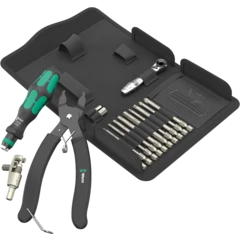 El juego para bicicletas Bicycle Set 3 a es el surtido de útiles práctico para realizar, de forma autónoma, trabajos de montaje y de reparación en bicicletas de carretera, bicis de montaña y bicicletas eléctricas. Un detalle especialmente útil: 1 estuche compacto con cremallera para llevarse algunas herramientas dentro de la camiseta. Esto ahorra peso durante las vueltas en bici.