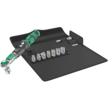 Juego de llave dinamométrica de 1/4" de 10 piezas en un estuche robusto de material textil; la llave dinamométrica viene con mecanismo de sobre-resbalo. Tan pronto se alcanza el valor de par de giro preajustado la herramienta no puede ser utilizada para apretar de manera forzada. Así queda excluido que se aplique un valor de par demasiado alto. Área de medición de 2 a 12 Nm para un apriete controlado hacia la derecha y la izquierda. Un ajuste y un aseguramiento fácil del valor de preajuste: con el encastre audible y palpable cuando se alcanzan los valores de escala, se facilita de forma adicional el ajuste seguro del valor dinamométrico deseado. Con la función Torque Lock para usarla como carraca estándar sin función dinamométrica. De esta forma también puede utilizarse para aplicaciones de ángulos giratorios. Dispone del valor máximo de rotura del cuadradillo de ¼" según DIN 3122. El ángulo de retorno es de tan solo 5°, así que la carraca también puede ser utilizada en situaciones de trabajo de gran estrechez. El juego contiene: Llave dinamométrica Safe-Torque A 1, de cuadradillo de 1/4", de 2-12 Nm, 8 vasos con arrastre de 1/4" y 1 prolongación corta.
