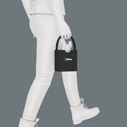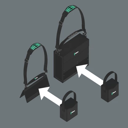 Por medio de su zona autoadhesiva de conexión, el cestillo se puede acoplar al porta-cajas de herramientas Wera 2go 1 así como al contenedor de herramientas Wera 2go 2.