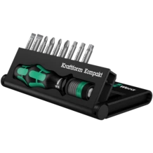 Los juegos se componen del mango Kraftform, del porta-puntas de cambio rápido, y de las puntas para el atornillado tanto manual como a máquina.