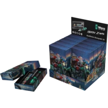 El juego de herramientas está empacado en un cartón con motivos navideños, y así sirve de regalo de navidad perfecto.